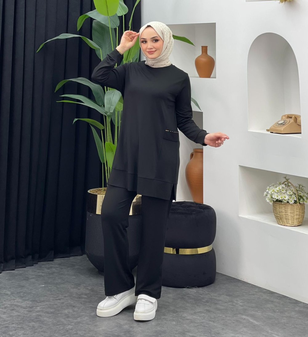 Cebi Taş Detaylı Takım Siyah
