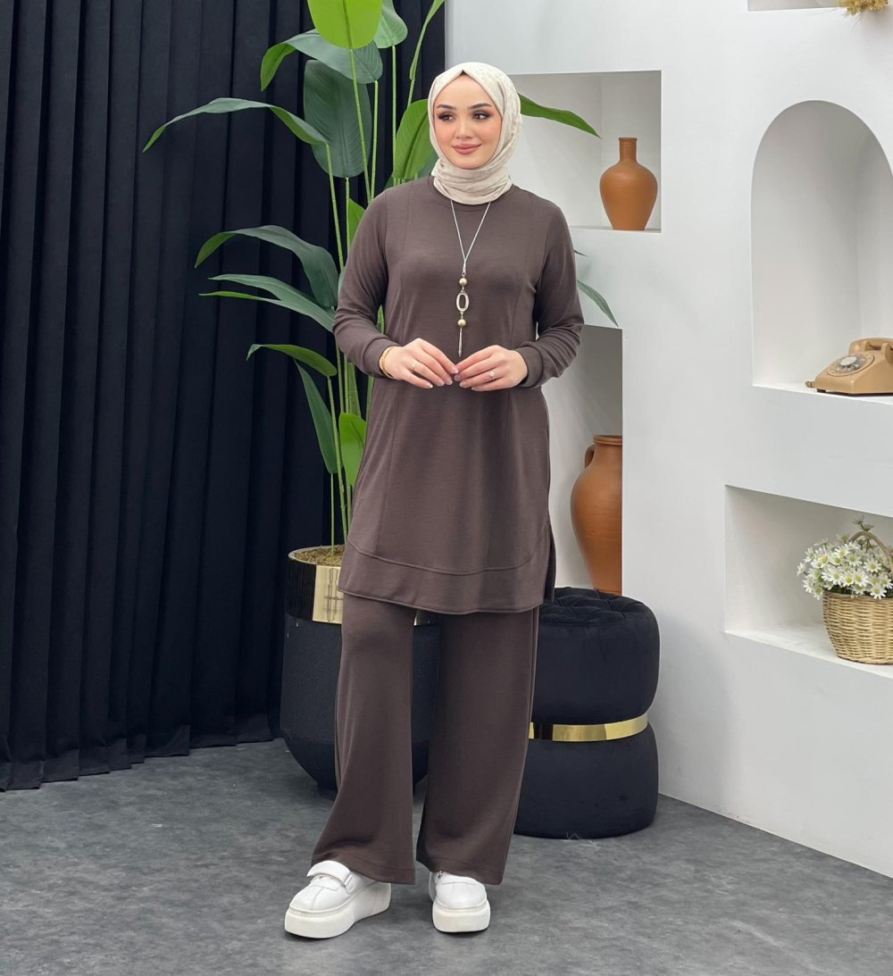Kolye Hediyeli Takım Kahverengi