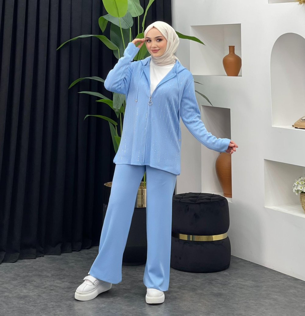 Taşlı Pantolonlu Takım Bebe Mavisi