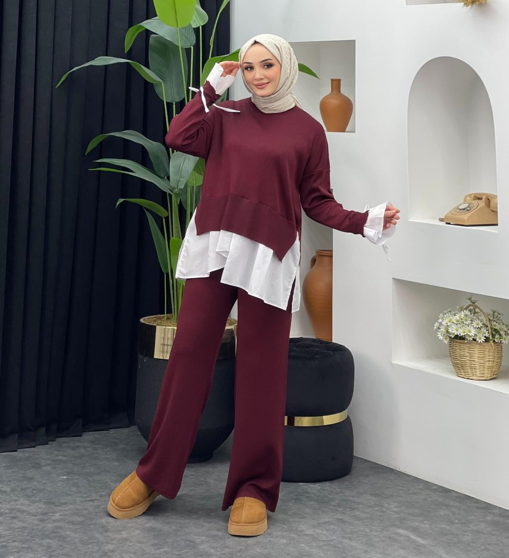 Truva Merserize Gömlek Takım Bordo