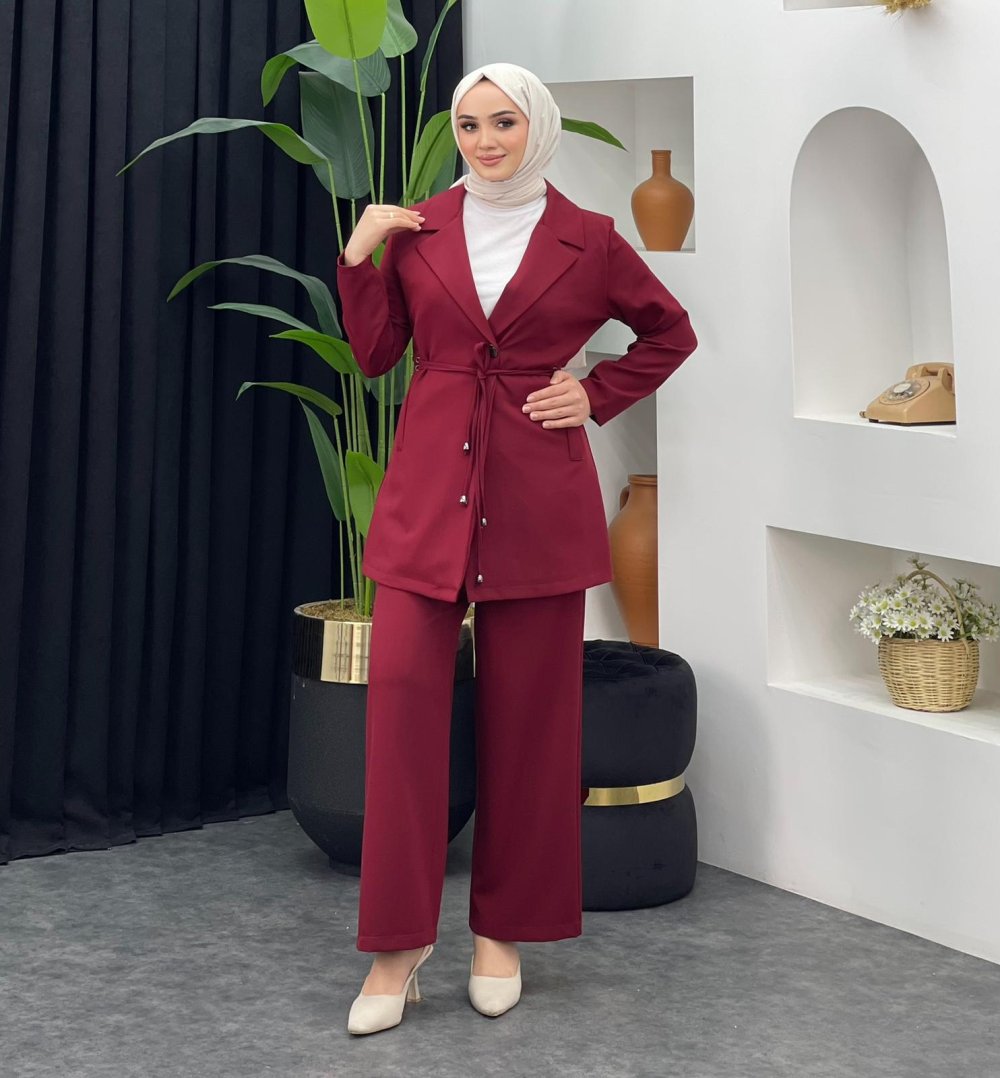 Yade Ceket Pantolonlu Takım Bordo