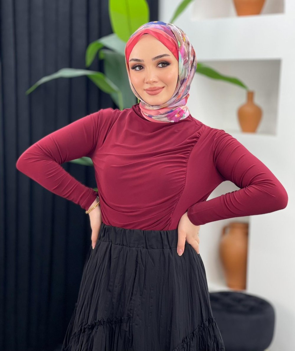 Yandan Büzgülü Bluz Bordo