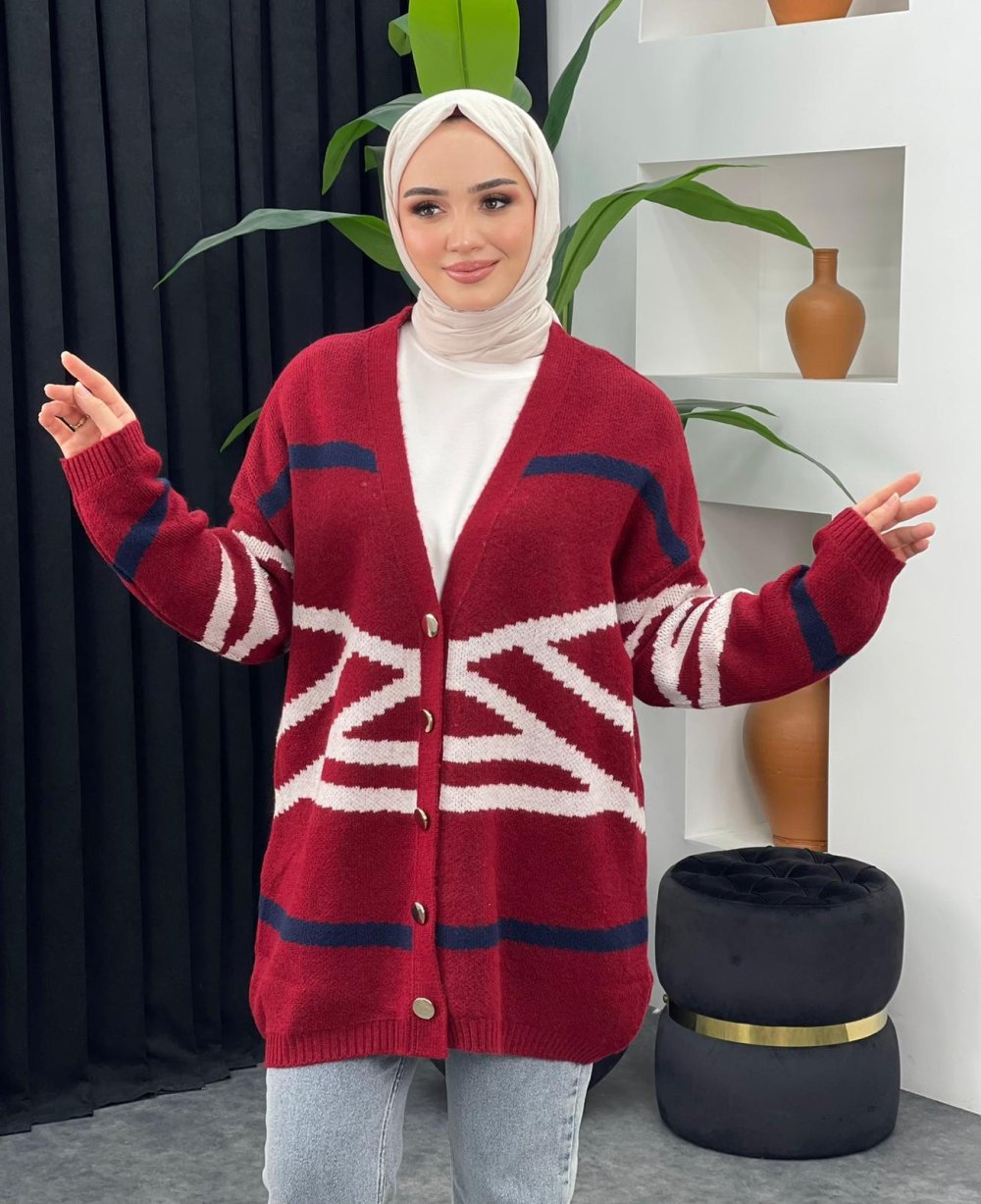 Zebra Desenli Hırka Bordo